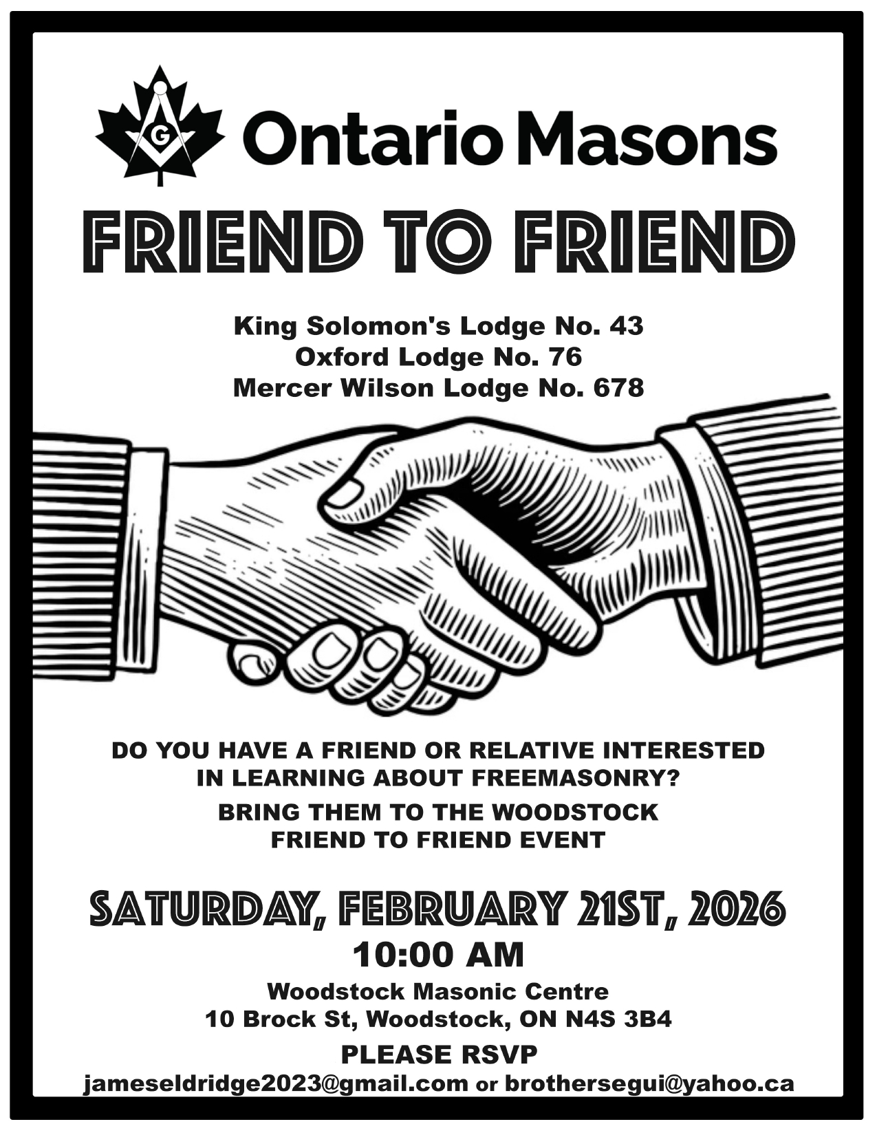 Friend To Friend – Woodstock Masonic Centre – Open to all District Lodges!!!