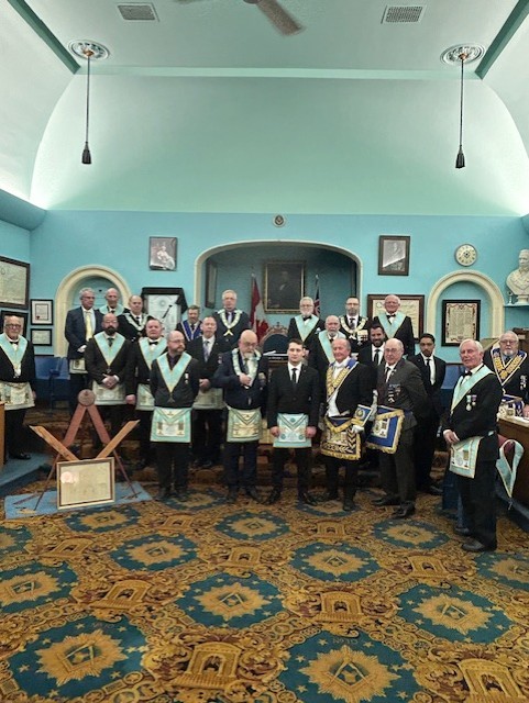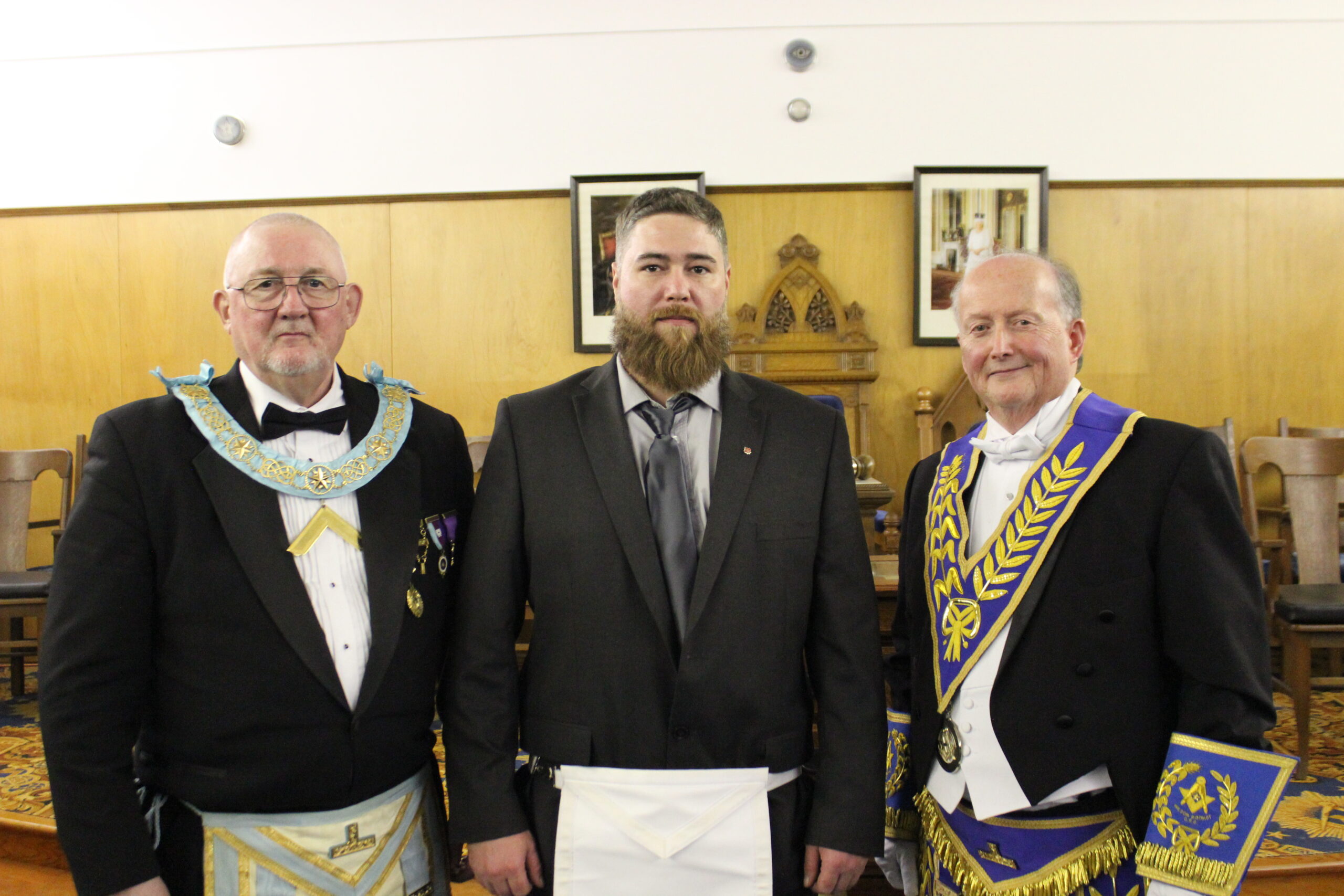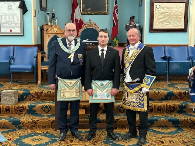l-r: W.Bro. Scott Paton - Michael Hamilton M.M. - R.W. David Palmer D.D.G.M. November 5, 2024